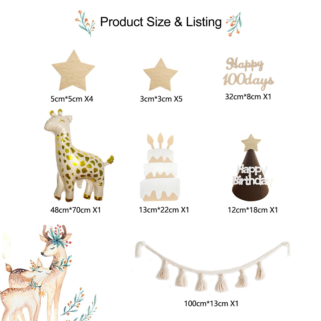 Qkie ハッピーバースデー 飾り フェルト布 ハーフバースデー 女の子 男の子 happy half birthday キリン バルーン、ケーキトッパー、タッセル タペストリー、誕生日ケーキ 飾り 誕生日 飾り 大人 写真背景 子供 飾り お祝い Birthday Party Decorations (Happy 100 Days)