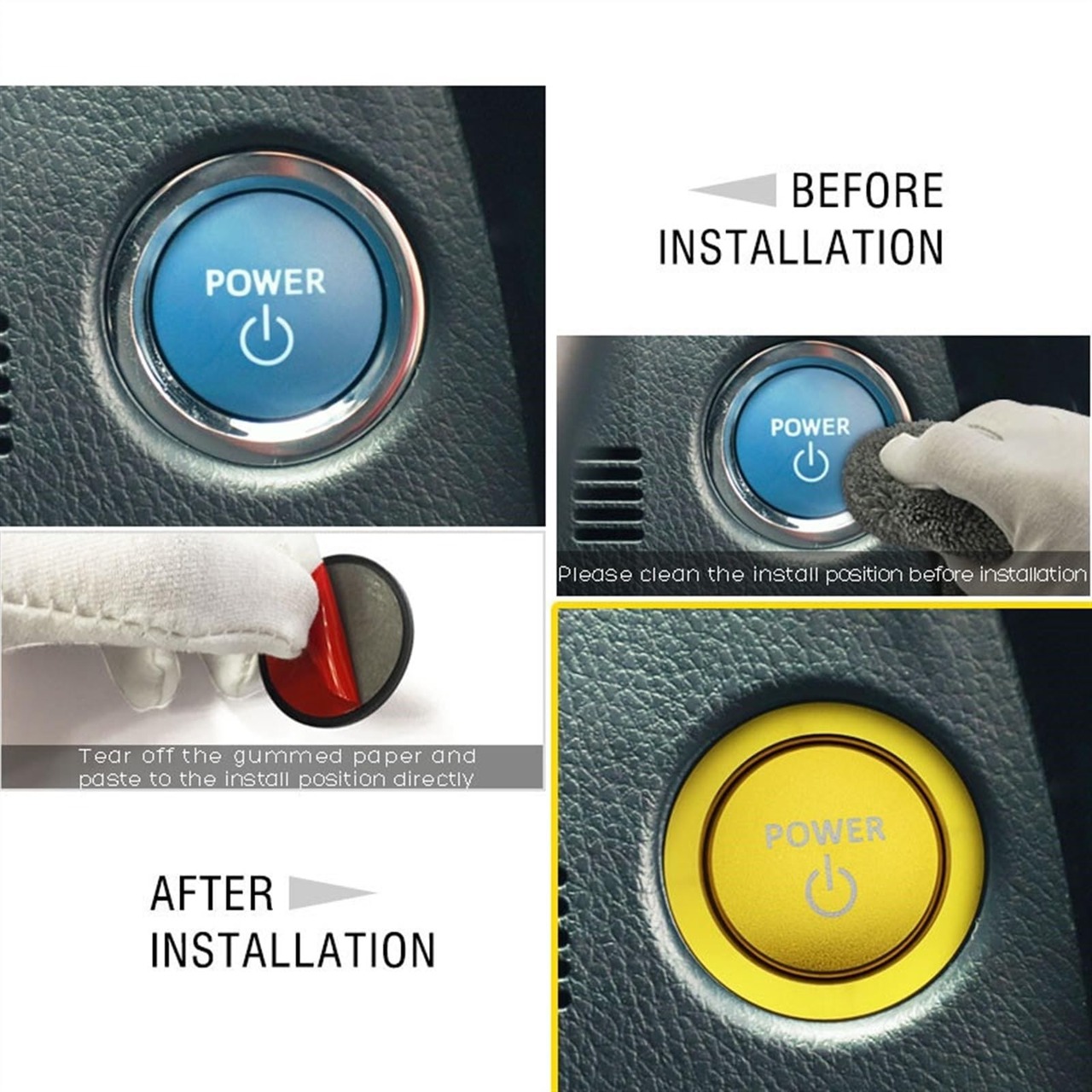 《取り付け》車のボタンステッカー ボタンを清潔に保ちます。 取り付けも非常に便利で、取り付け後は元のボタン部分をきれいに拭くだけで、簡単に取り付けることができます。