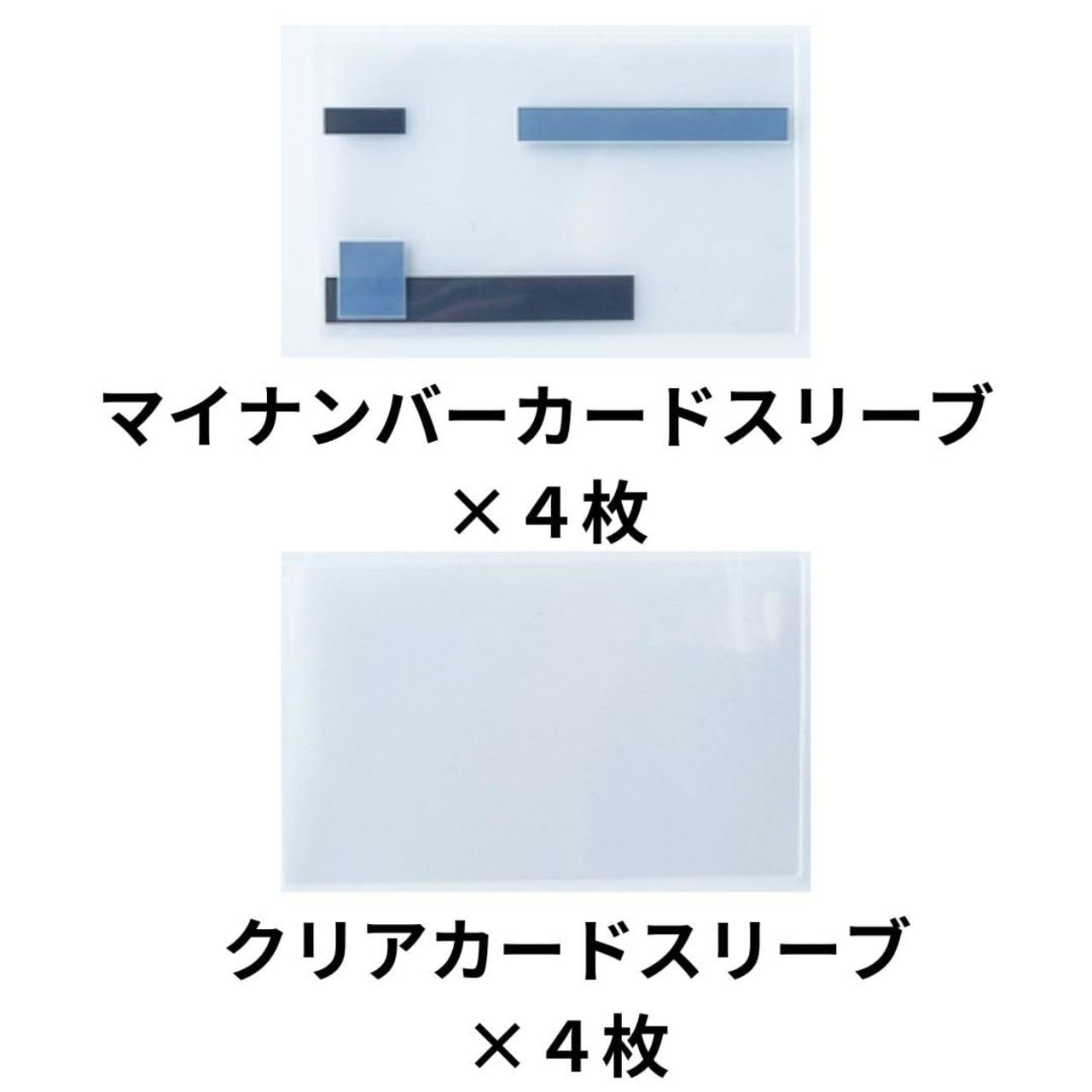 (商品名)カード保護スリーブ(材質)ポリプロピレン(寸法)約 縦56mm×横88mm(入数)1個(無地クリア×4枚/マイナンバーカード用×4枚 計8枚入り