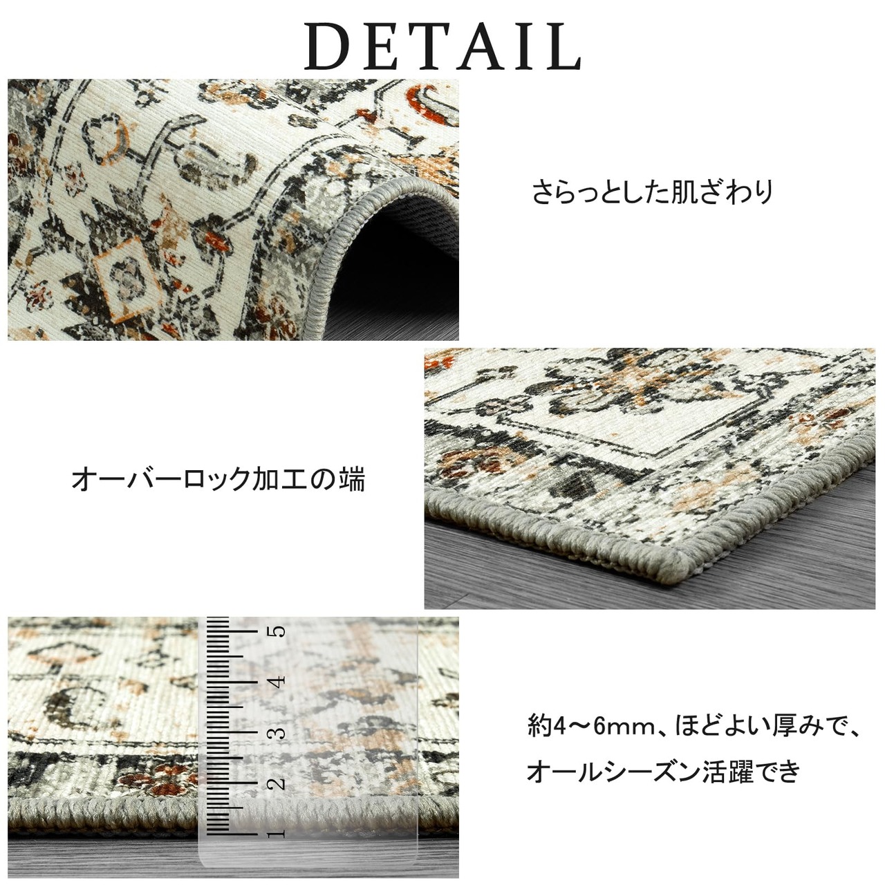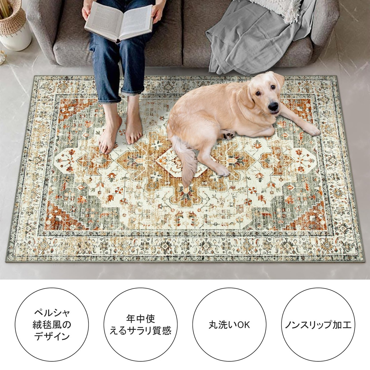 カーペット 洗える 140х200cm ラグ オールシーズン適用 ペルシャ風 じゅうたん 約2畳 滑り止め 防音 寝室 リビング ラグマット 抗菌防臭 耐磨耗性 軽量 ホットカーペット対応 メダリオン柄 カーキ
