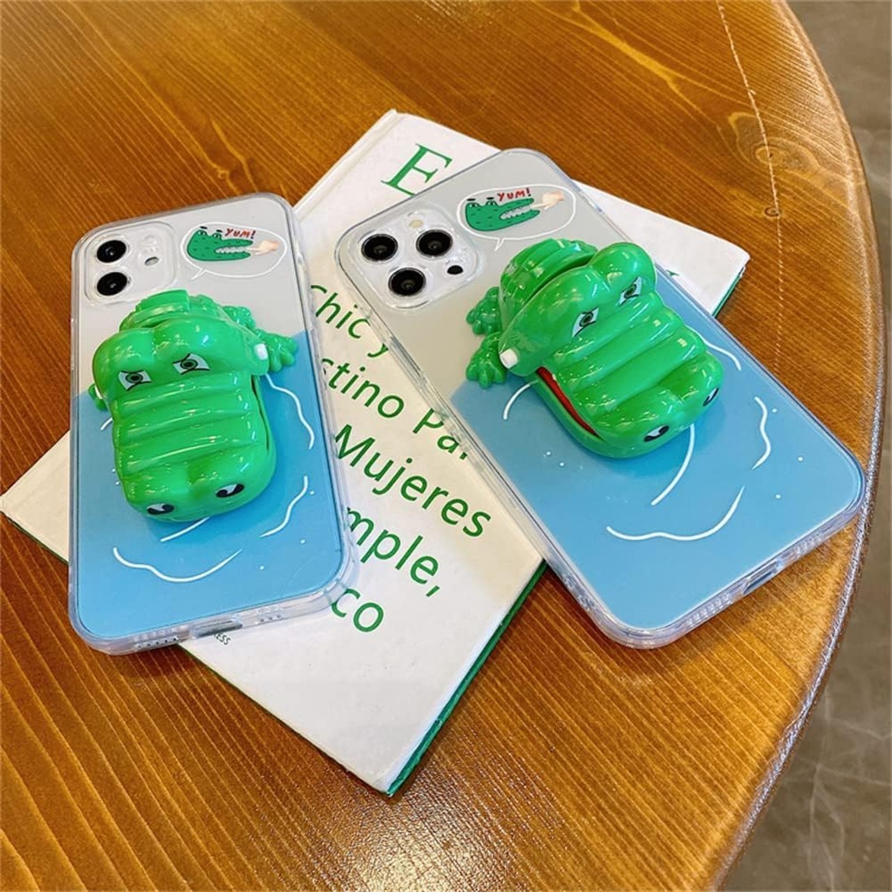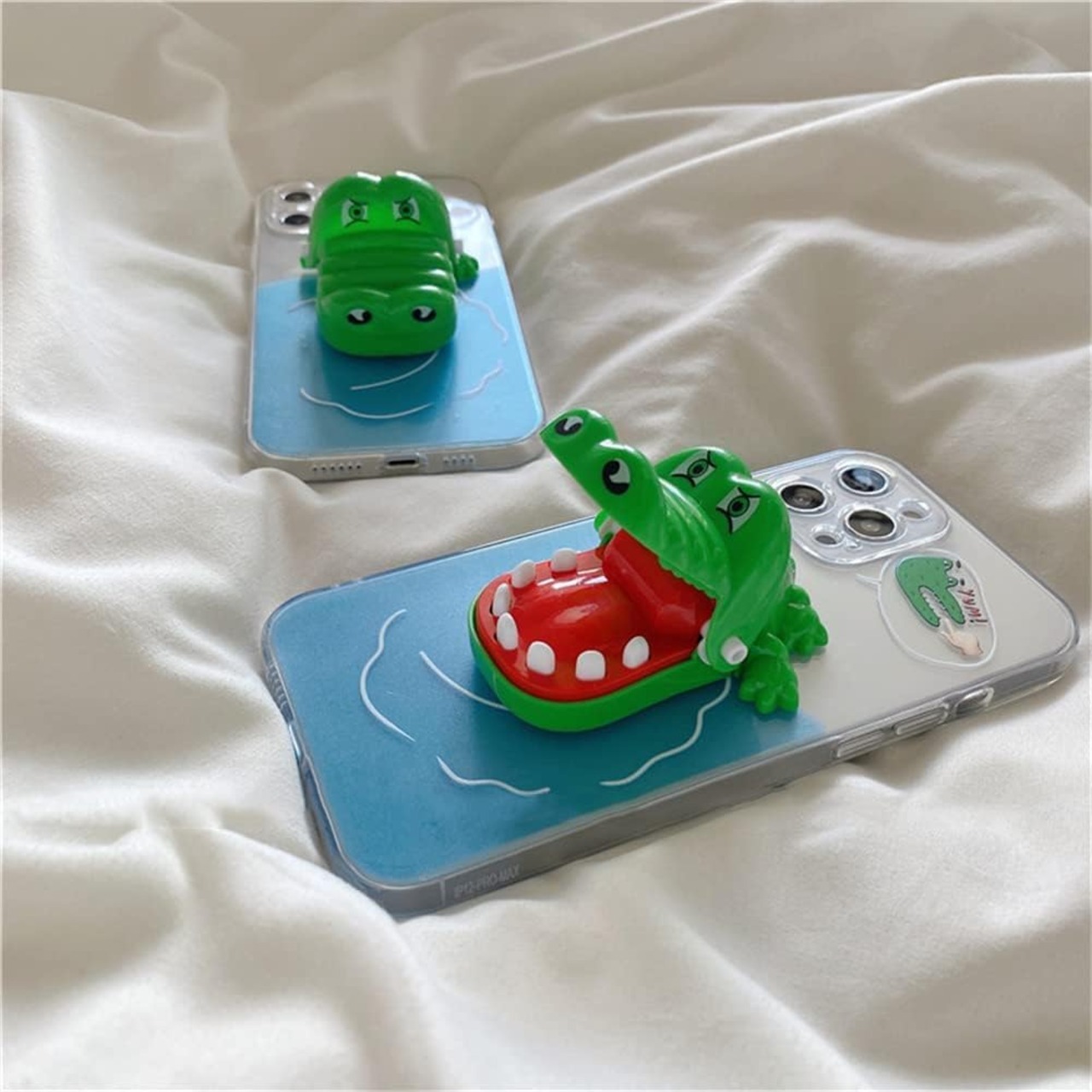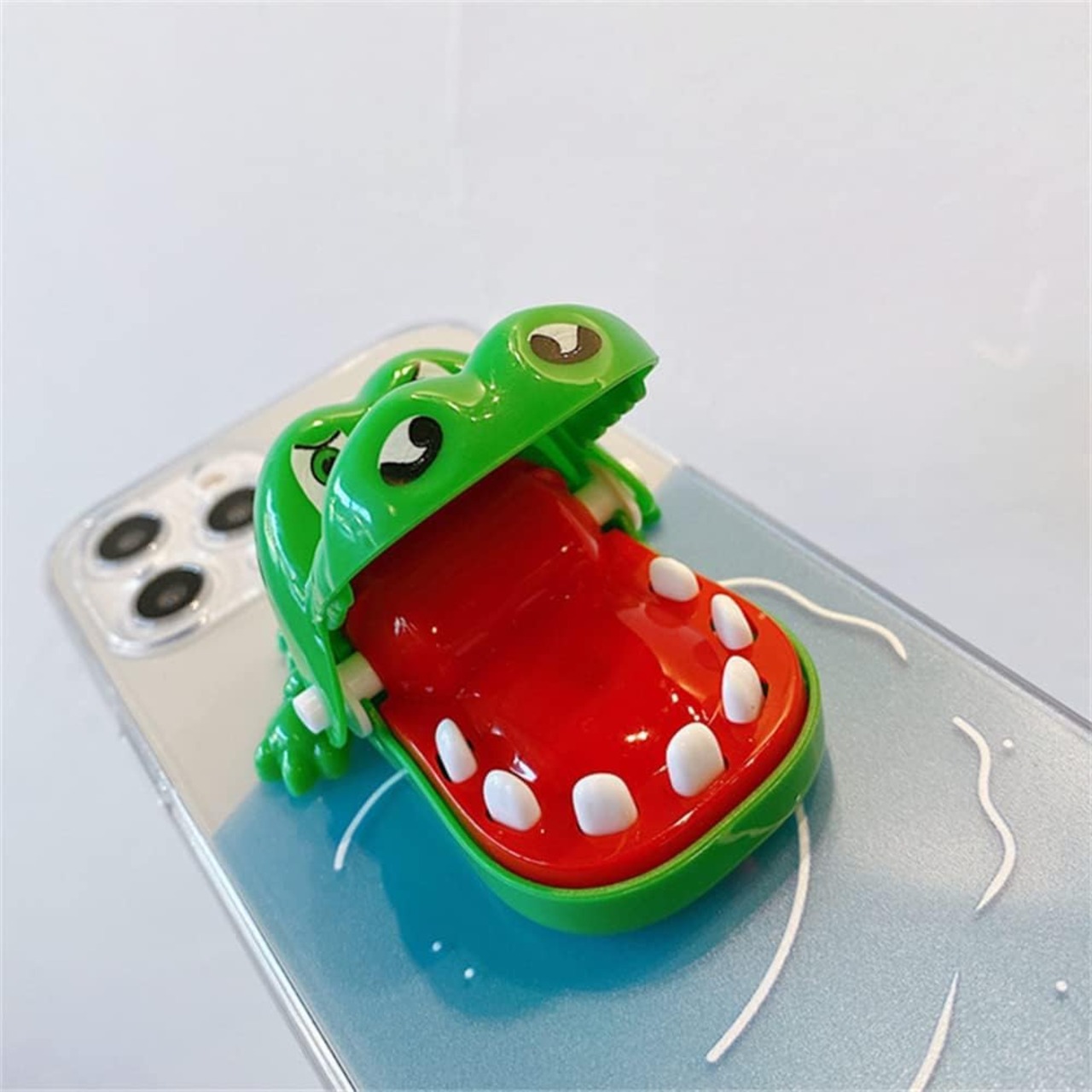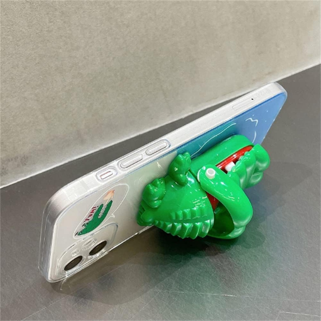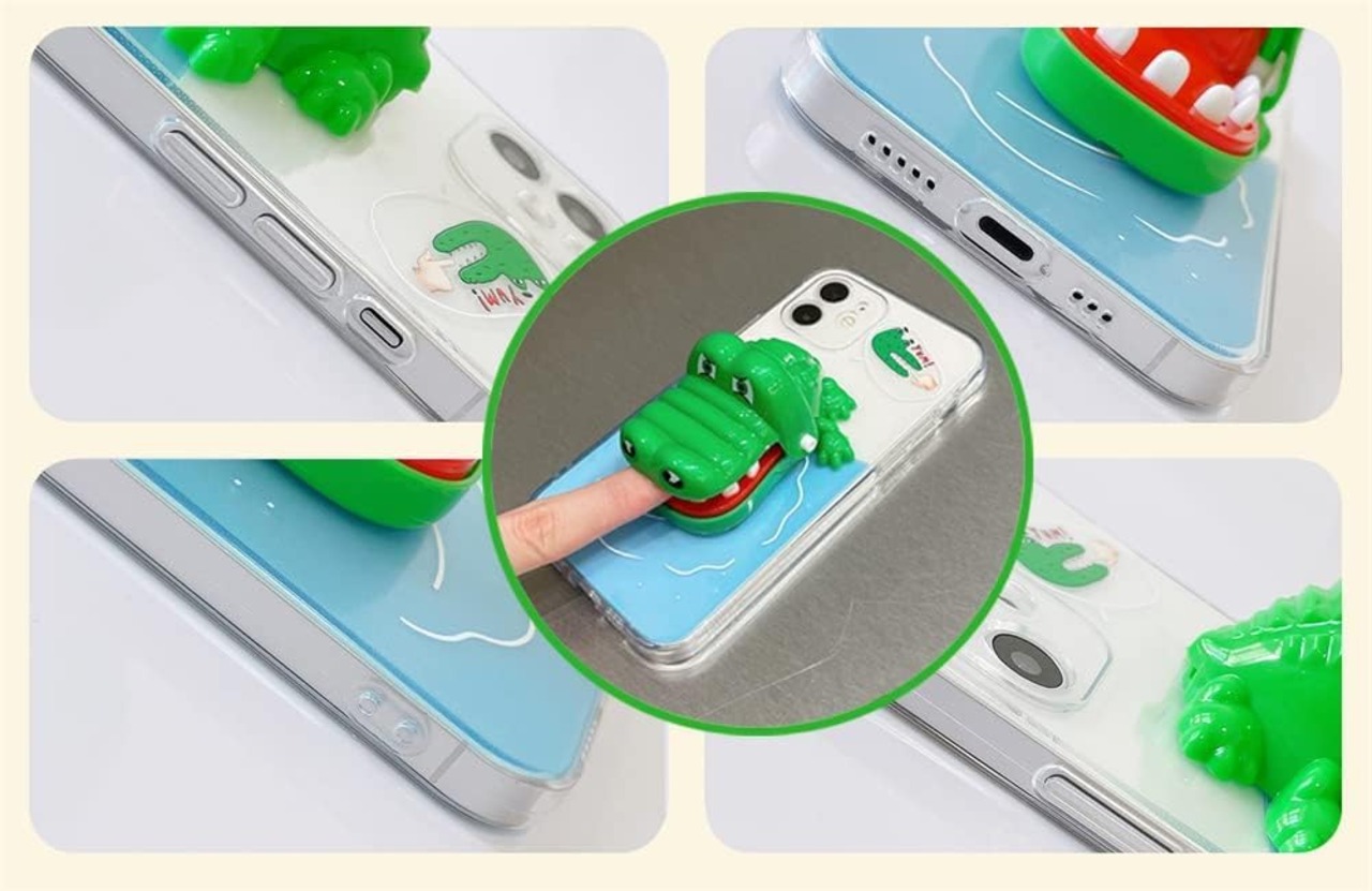 スタンド機能付き、裏にはワニ形のようなおもちゃがあります。使い方を紹介した動画があります。