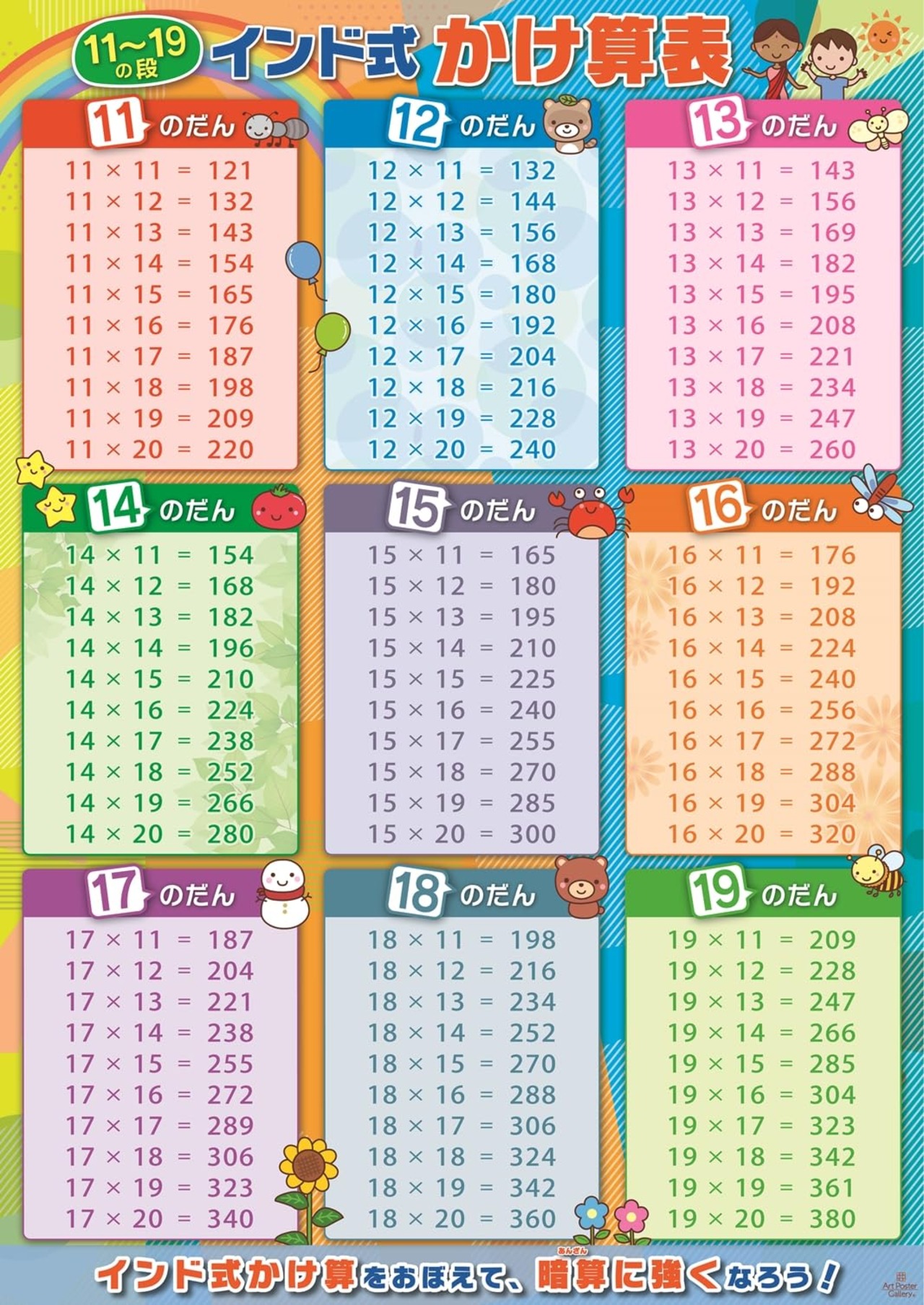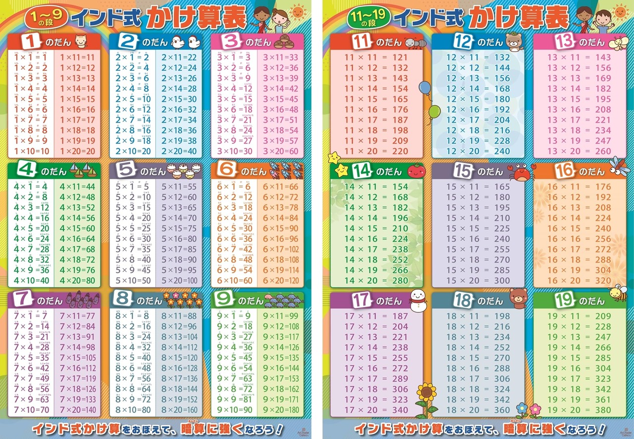 かけ算表 九九表 掛け算 インド式 2枚セット お風呂ポスター A2サイズ 数字 算数 知育 学習 おもちゃ 練習 小学校受験 幼児 学校 学習 学習ポスター 防水仕様 日本製
