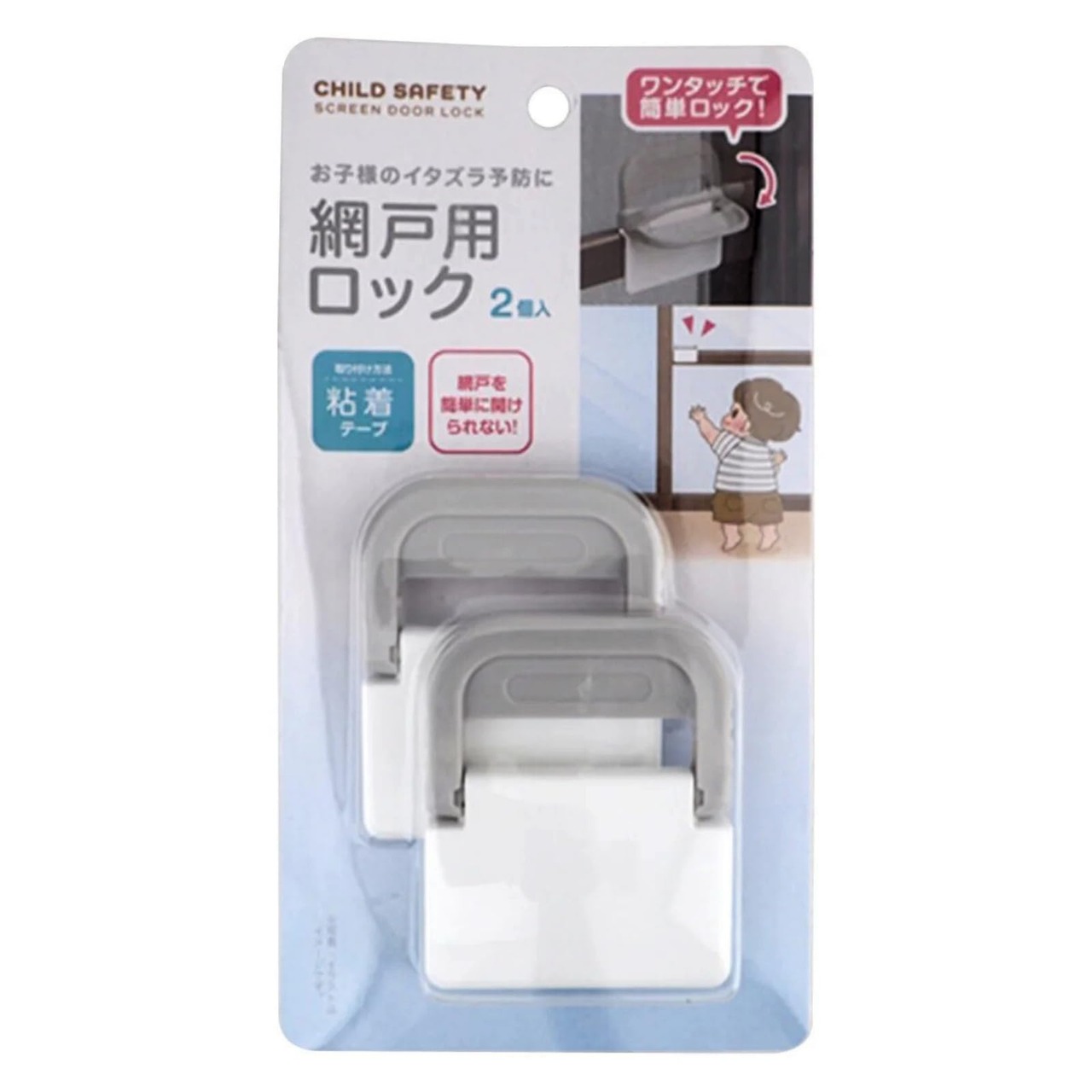 ワンタッチで網戸を簡単ロック 粘着テープ式 網戸用ロック 2個入り 子供 転落防止 猫 脱走防止 取り付け簡単 工事不要 窓の防犯対策 窓補助錠 網戸ストッパー