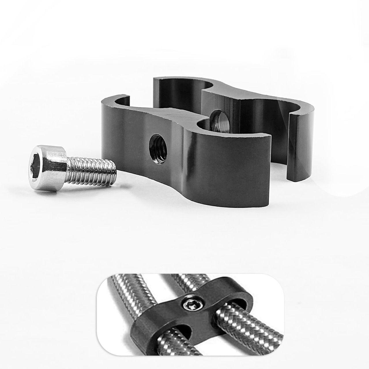 AN6 ブラックホースセパレータークランプ ブラックホースアルミニウムクランプ 内径14mm デュアル燃料ライン取り付けクランプ 水パイプ オイルライン ブレーキライン 燃料ホース用 6個