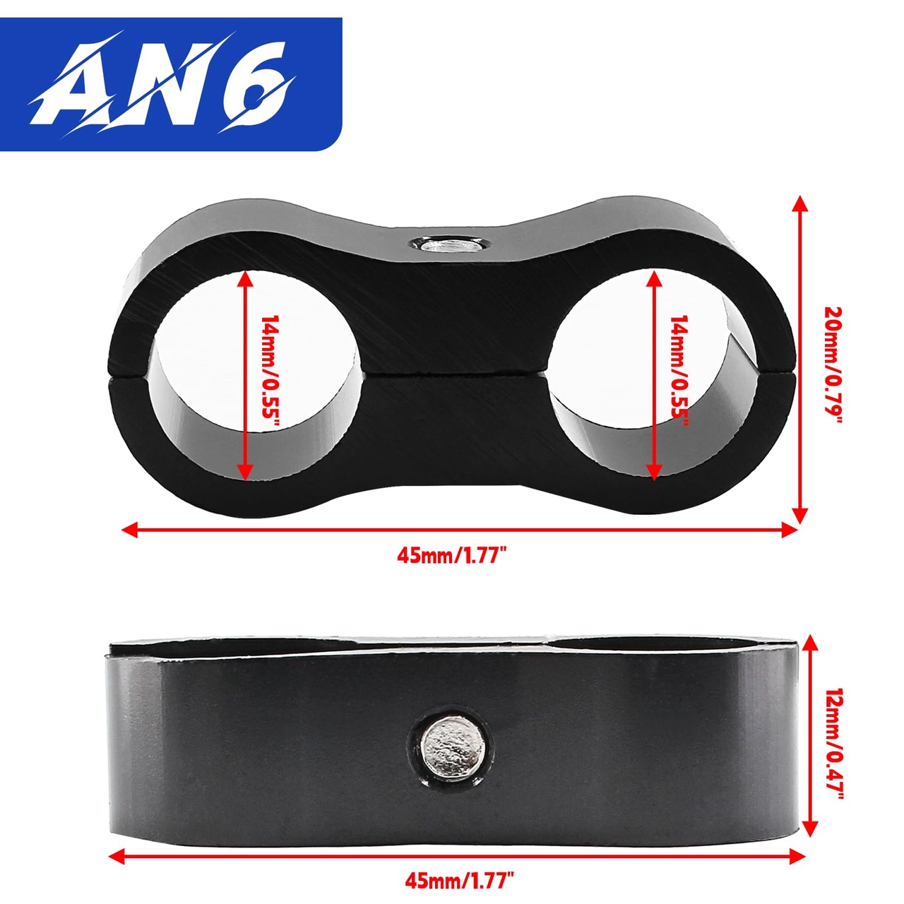 【内容物】: AN6ブラックホースアルミニウムクランプ6個。 全体のサイズ:45 x 20 x 12mm/1.77 x 0.79 x 0.47インチ(長さx幅x高さ)、閉じた内径:14mm/0.55インチ、外径14mm/0.55インチのパイプに適しています。購入前に正しいサイズを選択してください。