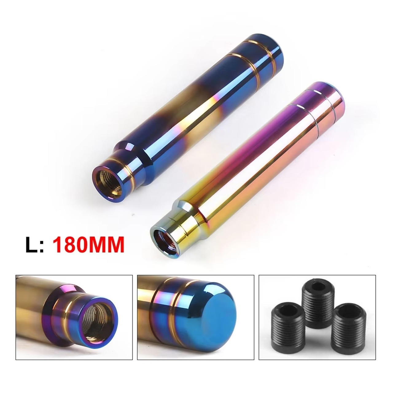 シフトノブ ス 90MM 130MM 180MM ユニバーサルギアシフトノブ マニュアルトランスミッション アルミシフターレバーノブ ネオクロームブルーイングと金メッキ シフトノブ レバー(180mm Bluing Gilding)