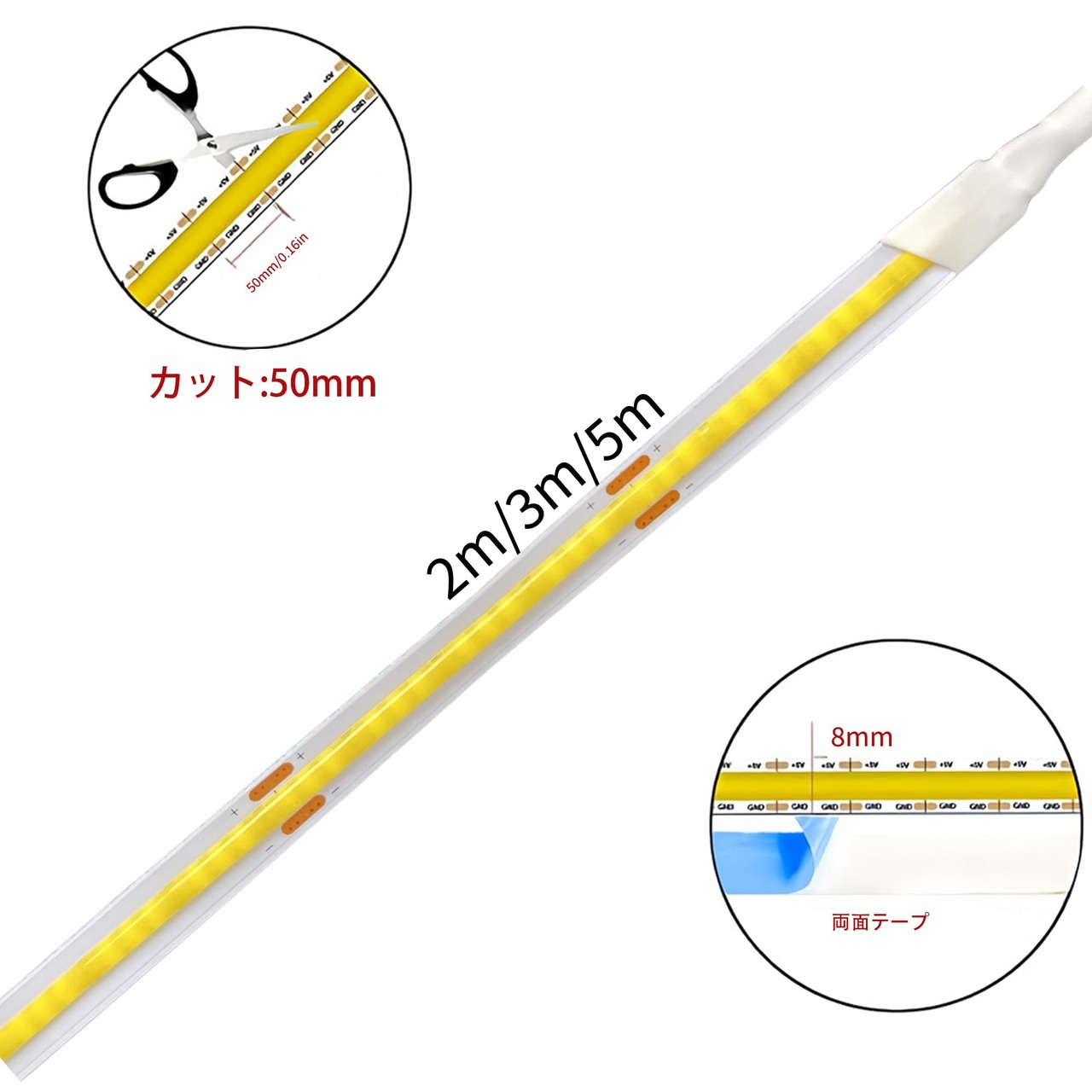 【480LEDストリップ】 Clearhill 12V COB 480LEDストリップライトは、高密度LEDチップを採用。従来のSMDライトストリップと比べ、先進的なCOB集積パッケージ技術により1メートルあたり480LEDを実現。高密度でシームレスな均一照明を提供し、光のムラや眩しさがなく、目に優しい柔らかな光です。※電源アダプターは付属しません。