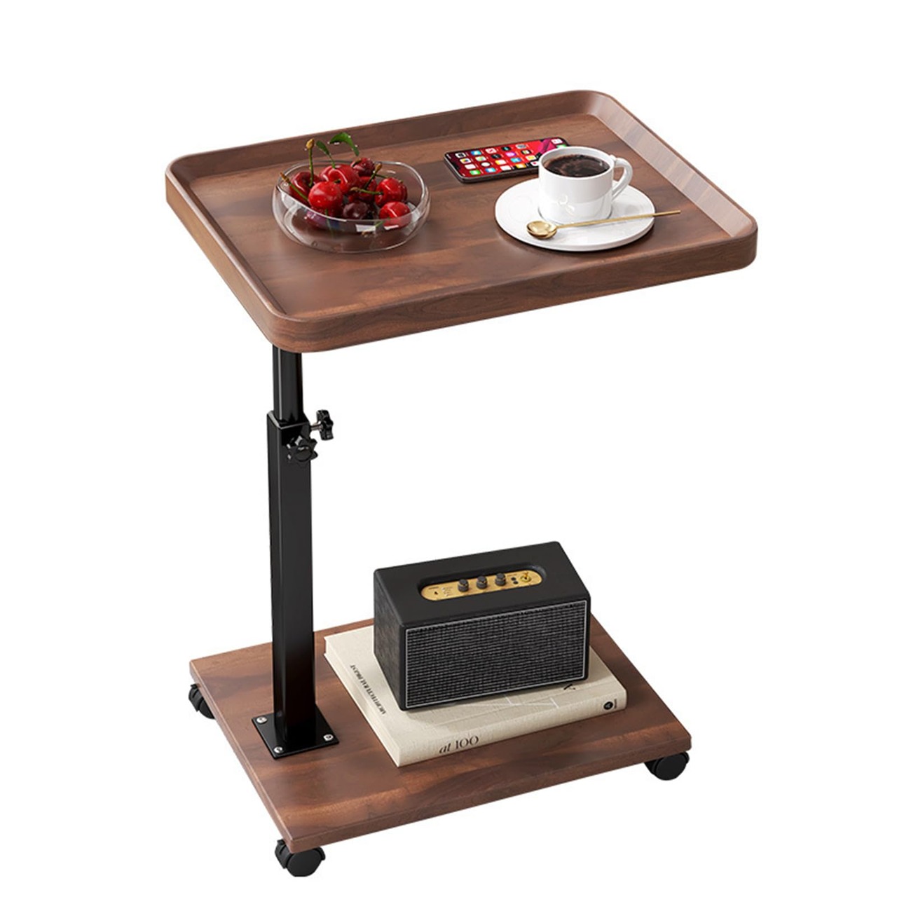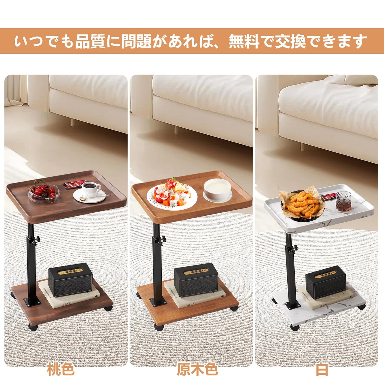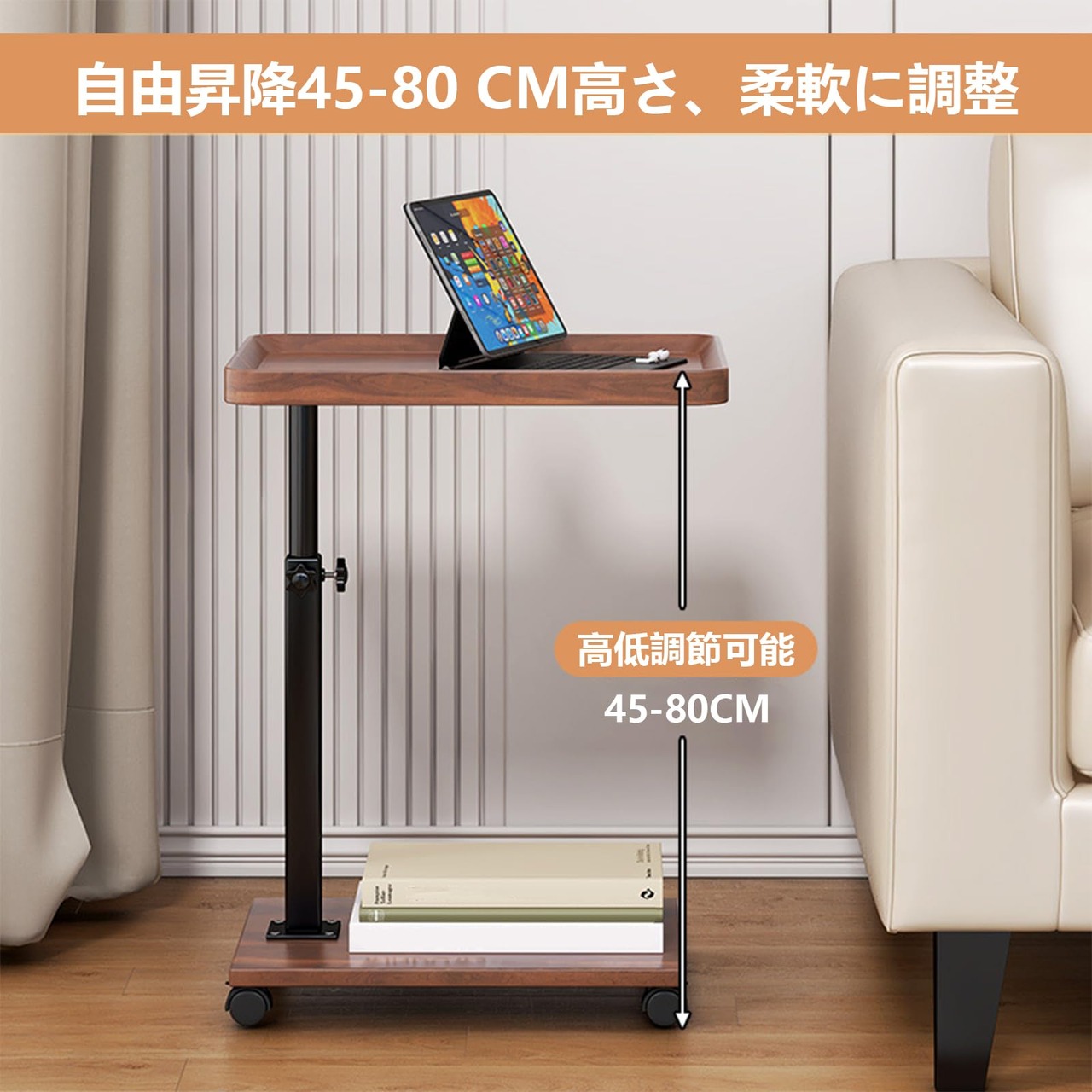サイドテーブル キャスター付き ベッドサイド テーブル 昇降式 木目調 簡易テーブル コの字型 高さ調節可能 移動便利 ナイトテーブル 小さい 一人暮らし 食卓 小型 (胡桃色)