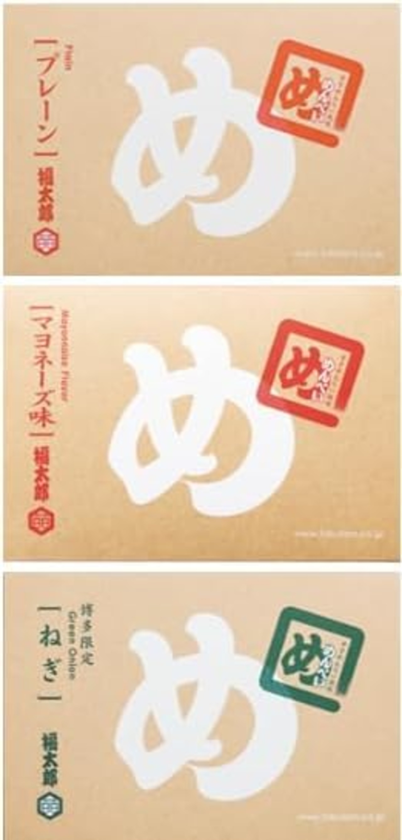 博多土産で喜ばれるめんべい。 (マヨネーズ・ねぎ・プレーン)の3箱セット、それぞれ8袋16枚入りです。食べ比べをお楽しみください。