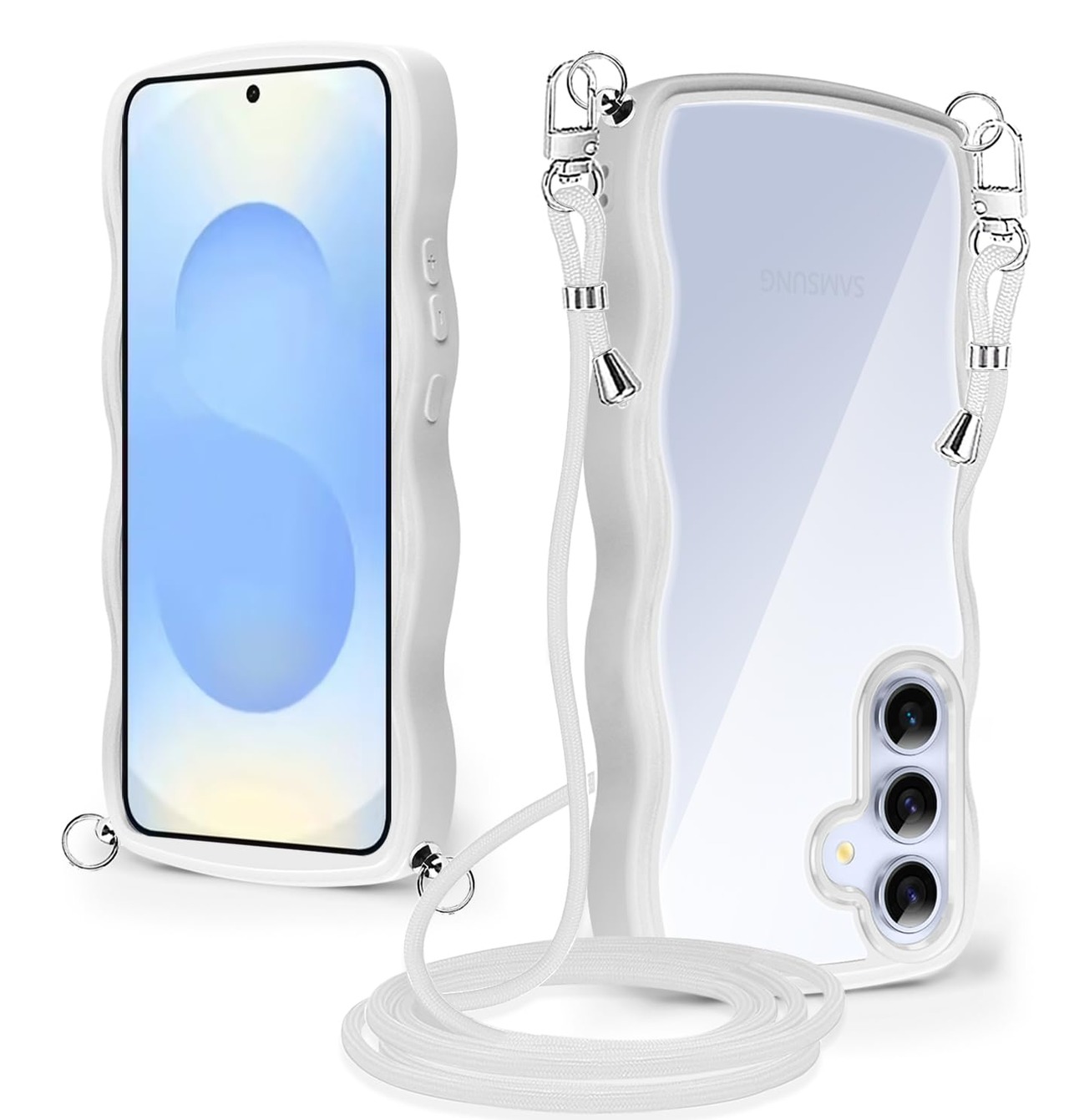 Galaxy S25 ケース クリア ショルダー SC-51F スマホケース ス ストラップ付き ギャラクシーS25 カバー 耐衝撃 透明 かわいい 人気 薄型 軽量 首かけ 肩掛け 縄掛けケー 取り外し可能 長さ調整可能 ワイヤレス充電対応(ホワイト)