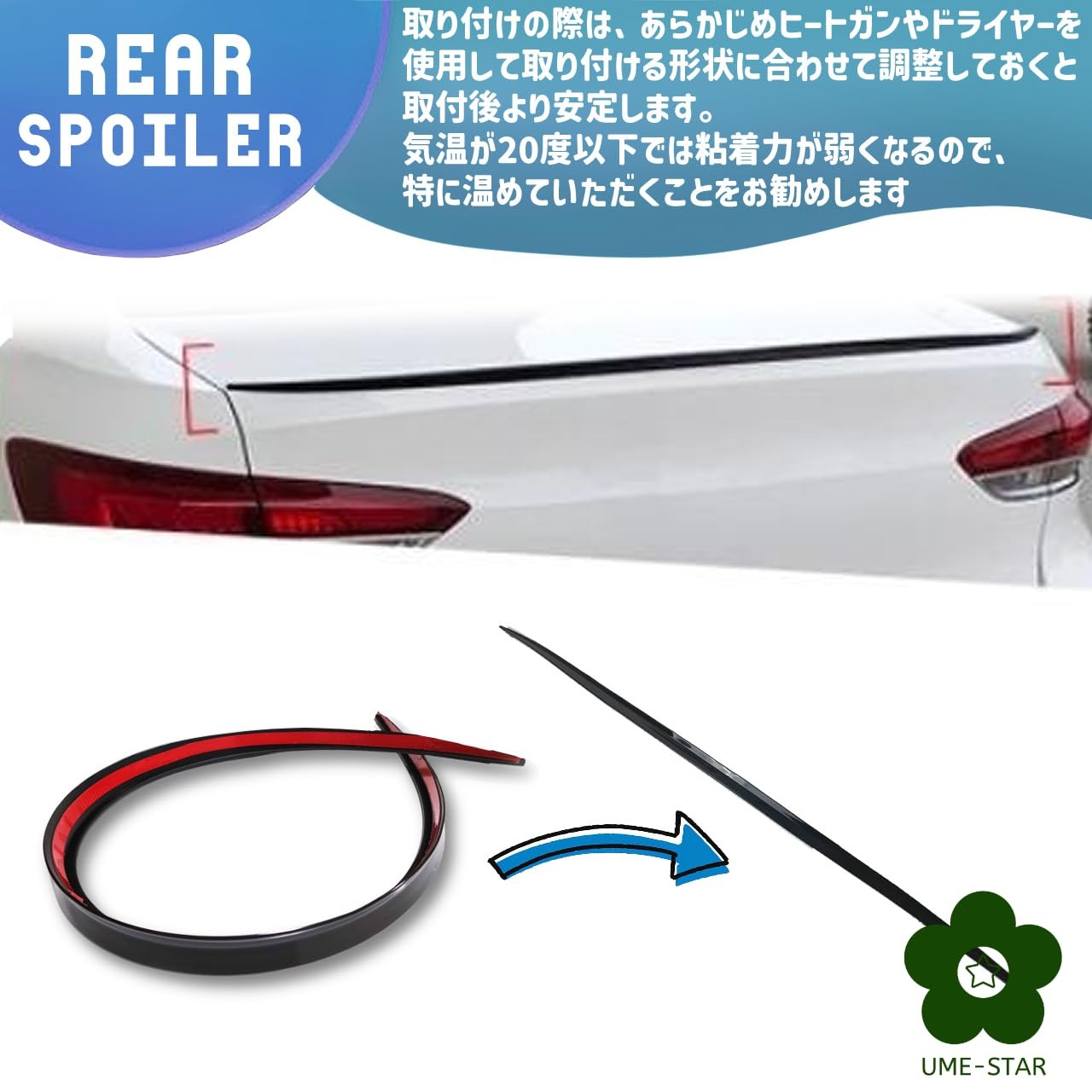 両面テープで簡単に取り付けられる汎用リアスポイラーです。 全長120㎝で、高強度の柔らかいゴム素材でできており、カッターでカットしてリアのサイズに合わせてお使いいただけます。