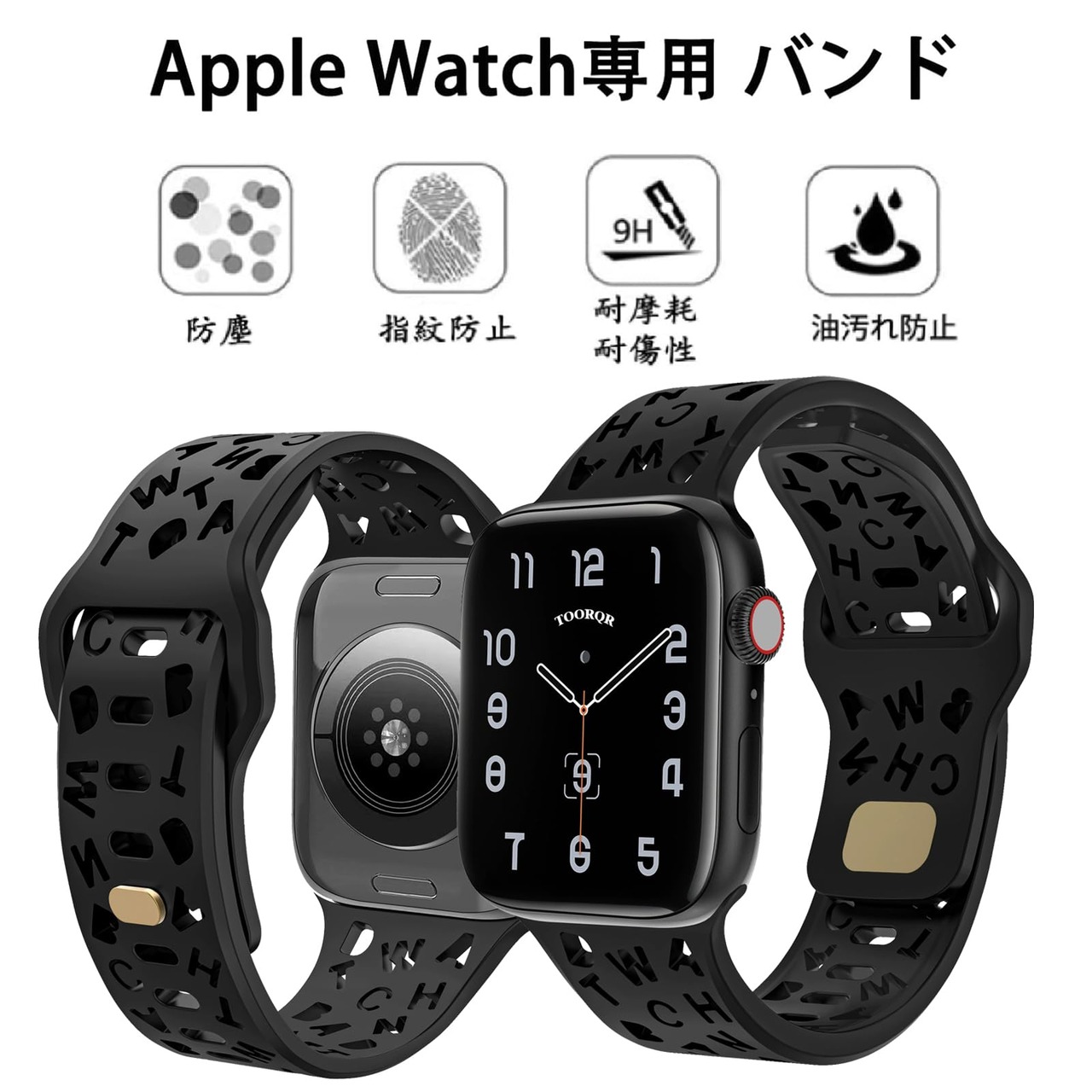 TOORQR コンパチブル iWatch バンド アップルウォッチ バンド 英字スタイルの中空デザインシリコン製のApple Watch ベルト 49mm 46mm 45mm 44mm 42mm 41mm 40mm 38mm 通気 シリコン交換ベルト 防汗 防水 Ultra2/Ultra 10 9 8 7 6 5 4 3 2 1 SE に対応 (49/46/45/44/42mm,ブラック)