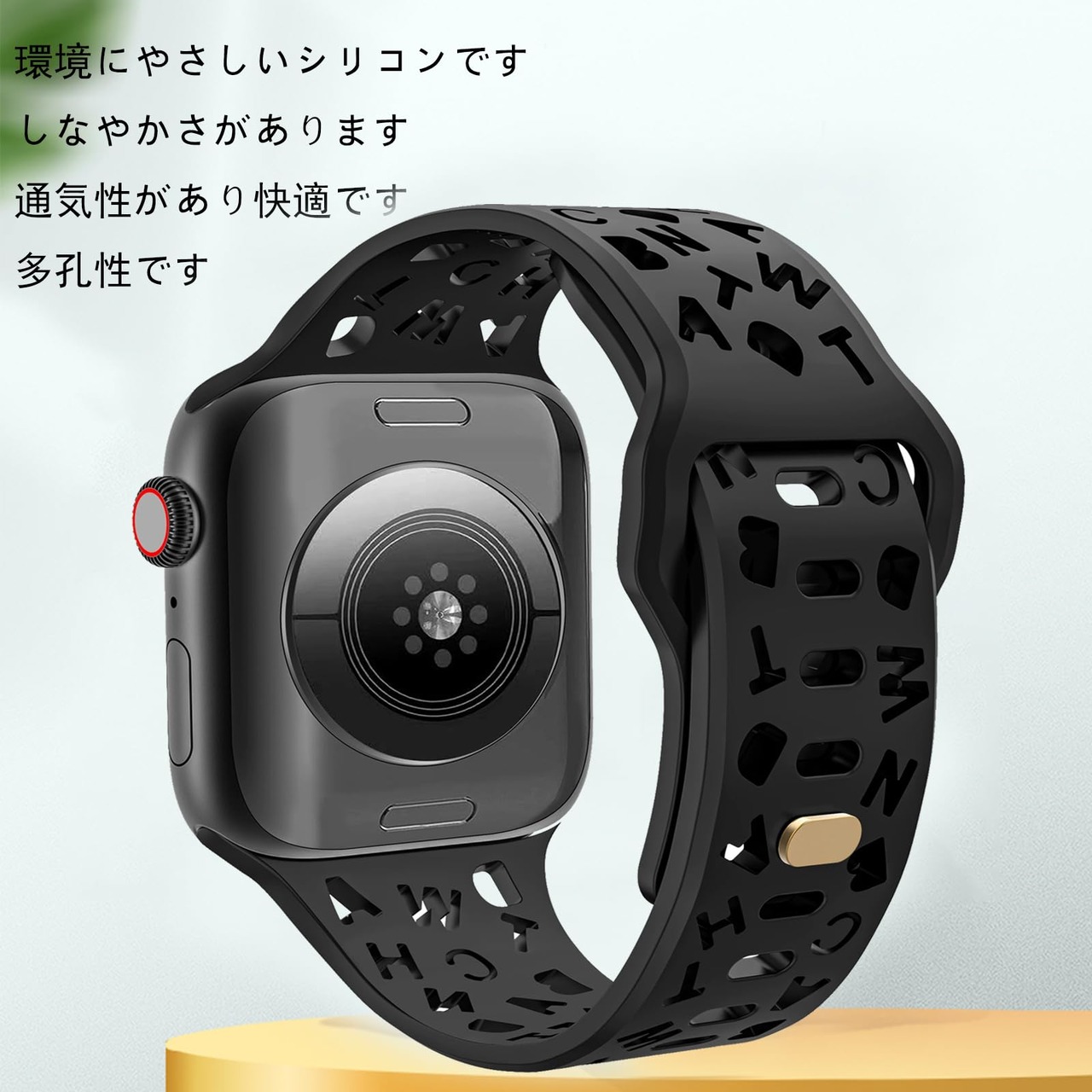 【プレミアムシリコン材料】Apple Watchに対応した高品質英字スタイルの中空デザイン、エコ素材を使用して精巧に作られた。Apple Watch シリコンバンドの素材は肌に優しい高品質ソフトシリコン素材です。とても柔らかく、快適で耐久性があります、水洗いができます。お客樣に素晴らしい着用体験をもらいます。