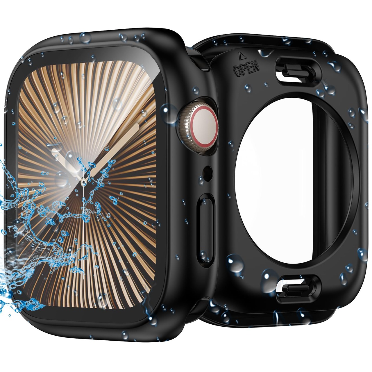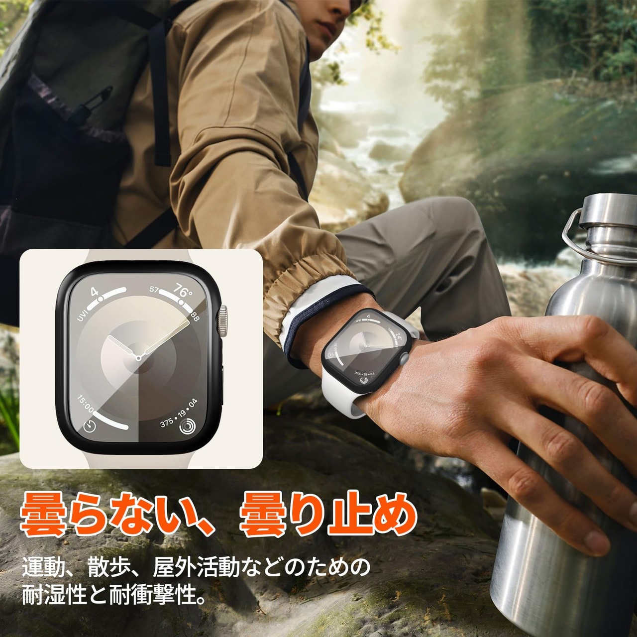 【IP67防水&防塵】新しい保護ケースは、画面の強化ガラスフィルムの下部に防水性の柔らかいゴム製のシーリングリングが組み込まれており、ガラスフィルムと本体の間に水が浸入するのを効果的に防ぎ、日常使用中に水との接触を防ぎます。シャワー、手洗い、汗、雨、スポーツなどの日常着に最適です, 水の浸入を防ぎます。※ご注意:ダイビングなどの深層水耐性には適しません。正しく操作するには、Apple Watch の指示に従ってください。