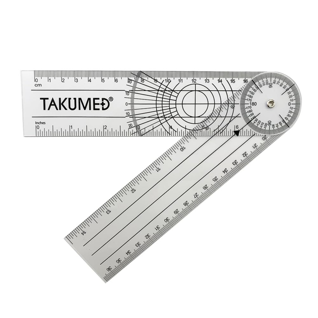 角度や長さおよび可動域の計測に使用します。分度版は0度を起点とし上下を問わず最大で180度(誤差±1度)まで計測が可能です。