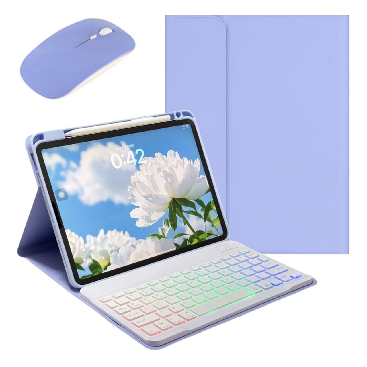 マウス付き iPad 11世代/10世代 バックライトキーボード iPad(A16)11インチ 2025/10.9インチ 2022 キーボードケース カラフル RGBバックライト 分離式 Apple Pencil 収納可能 ,紫+白
