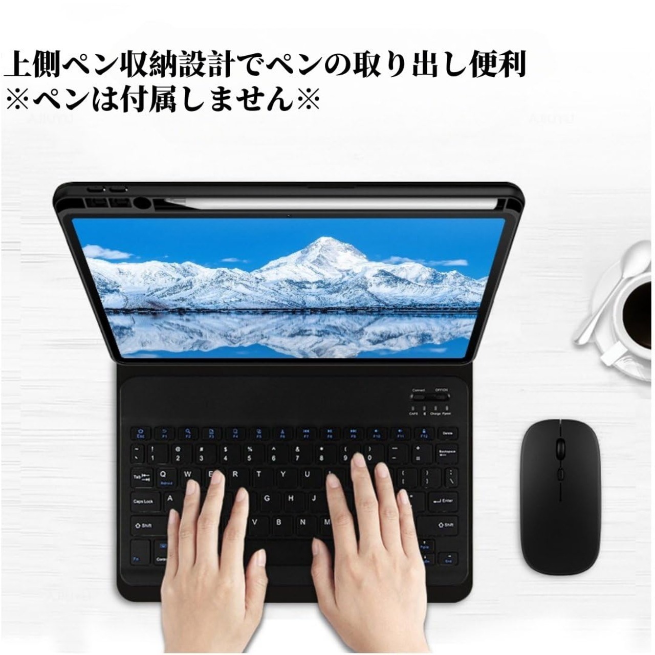 上側タッチペン収納 : アイパッドキーボードケースは上側にペンホルダー付きでApplePencil収納可能、ペンの取り出しがやすくて人気。