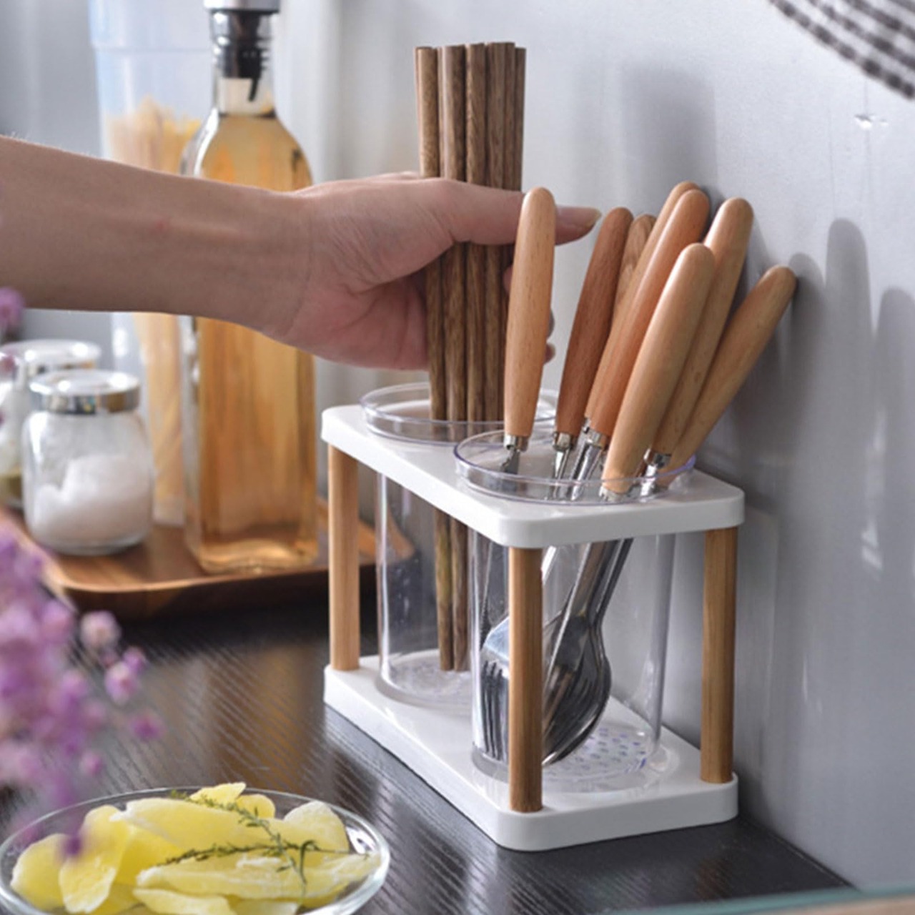 ユーザーフレンドリーな竹のラックと頑丈な箸ホルダーでキッチンを整理します。