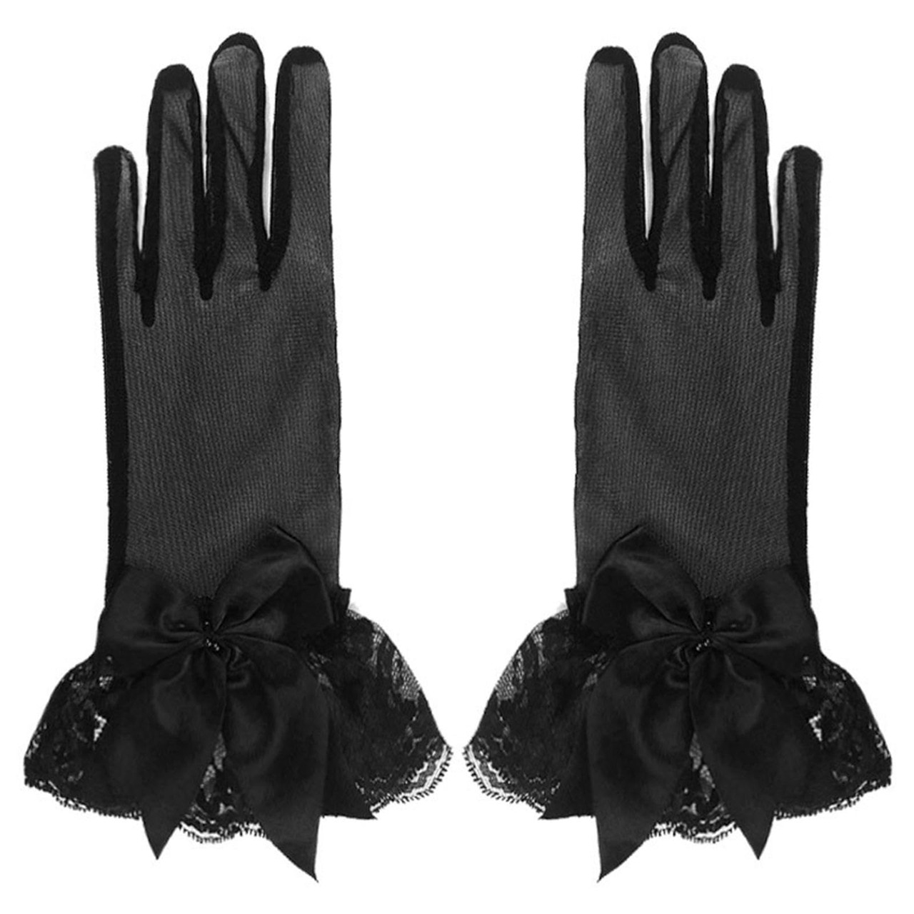 [Toysmith] レディースレースグローブ、リボン装飾ブライダルグローブ、耐久性のあるエレガントなコスチュームグローブ、コスプレパーティー/オペラ/結婚式用, 黒