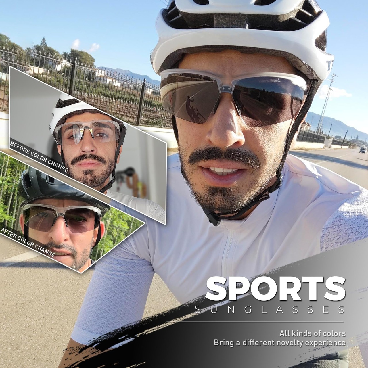【調光スポーツサングラス & UV400保護】このスポーツサングラスは、調光レンズを搭載しており、光の強さや天候の変化に応じてレンズの色が自動で調整されます。紫外線を100%カットするUV400保護機能により、目を有害な紫外線から守ります。晴れた日や曇りの日でも最適な視界を提供するため、サイクリングやランニング、登山などのアウトドア活動に最適です。