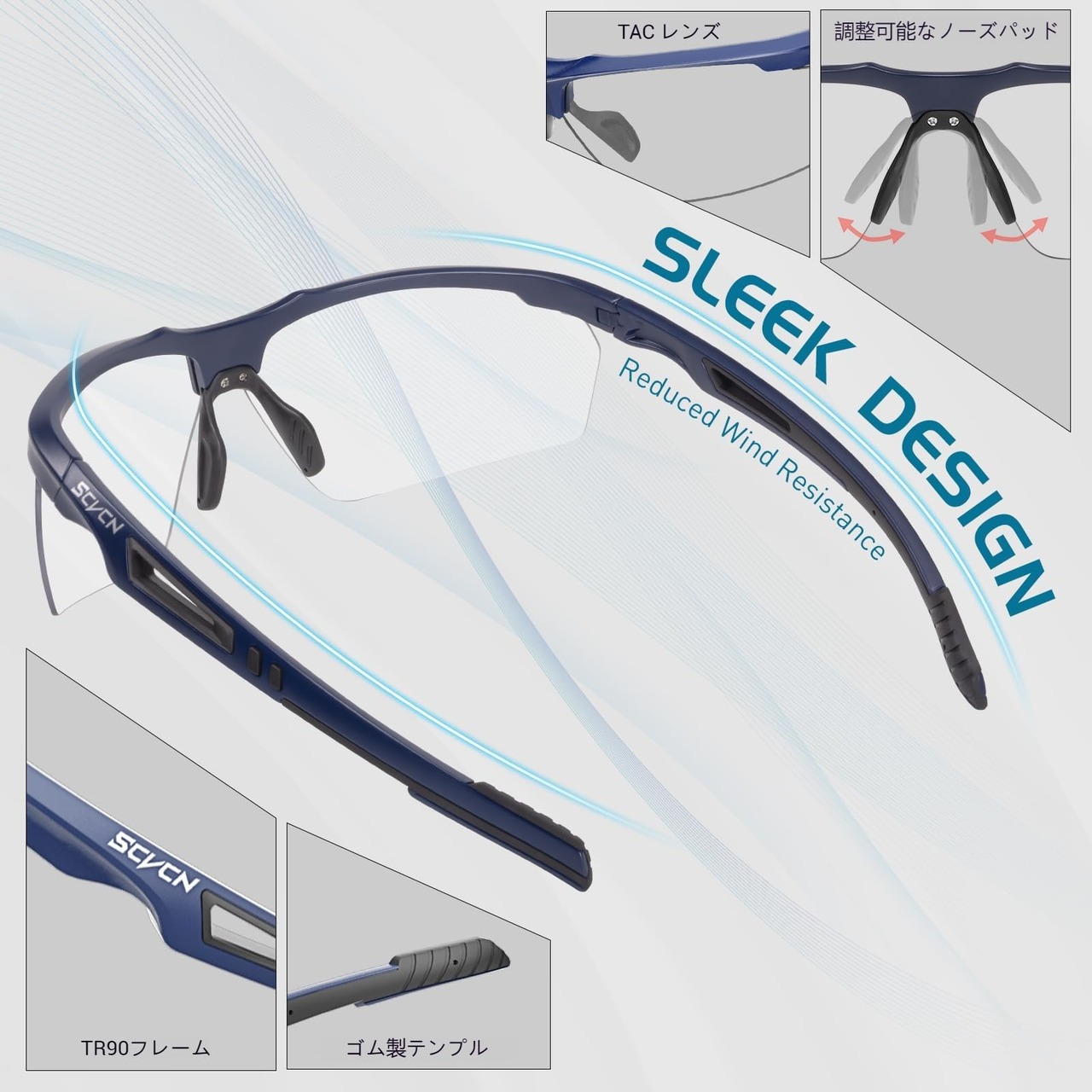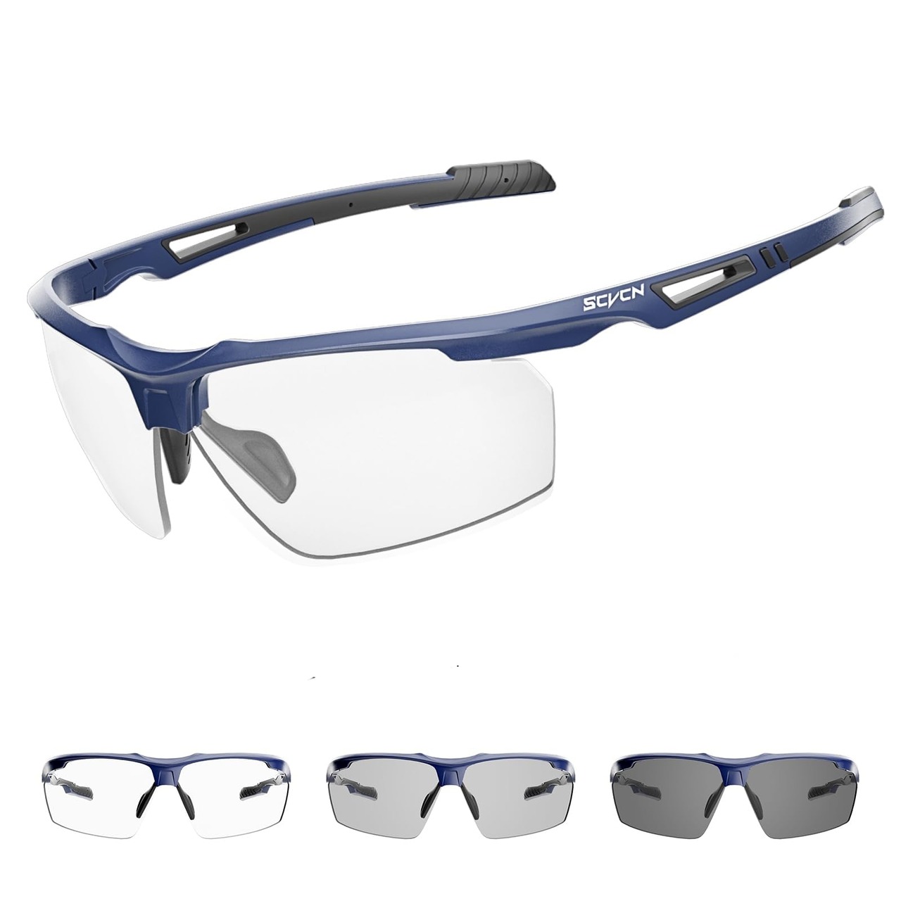 SCVCN 調光スポーツサングラス メンズ レディース 超軽量 TR90 UV400 紫外線カット 防風仕様 夜間対応 サイクリング 登山 ランニング マラソン 野球 アウトドア対応 (コバルトブルー ブラック)