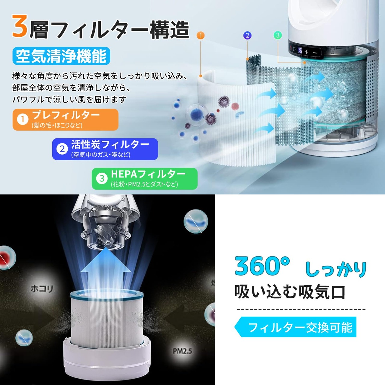 【空気清浄機能付き・トリプル効果の高性能フィルター】ファンヒーターには空気清浄機能が付いていし、プレフィルター+活性炭フィルター+HEPEフィルターで、3層仕組みの仕様をしています。寒い日に窓を開けて風を通したり、消臭したりする心配はありません。高品質HEPAフィルターがPM0.1レベルの微細な粒子を99.97%除去し、空気中の細菌、花粉、ホコリ、ウイルス、ペットの毛を効果的に吸着できます。活性炭フィルターは、脱臭用に特別に配合されており、匂いの強力分解、脱臭に加え、料理臭、ペット臭、部屋干し衣類の生乾き臭、体臭、加齢臭などを消臭できます。