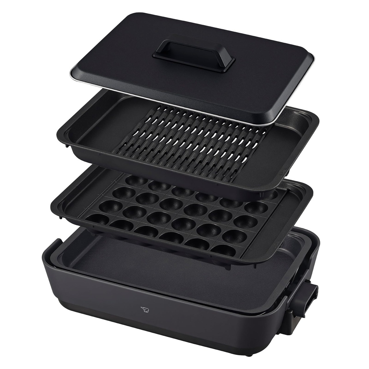 象印マホービン ホットプレート 3枚タイプ 穴あきプレート 深型平面プレート たこ焼きプレート チャコール EA-HA30-HZ